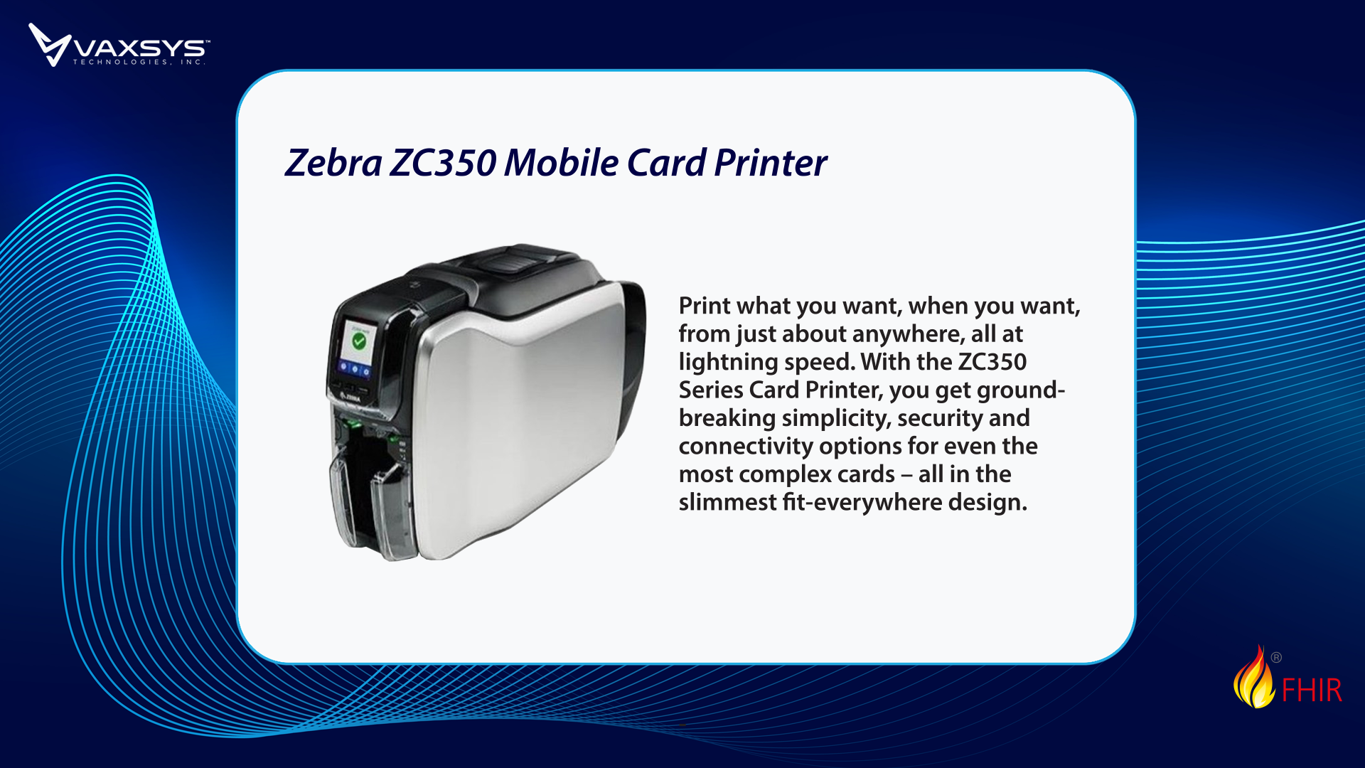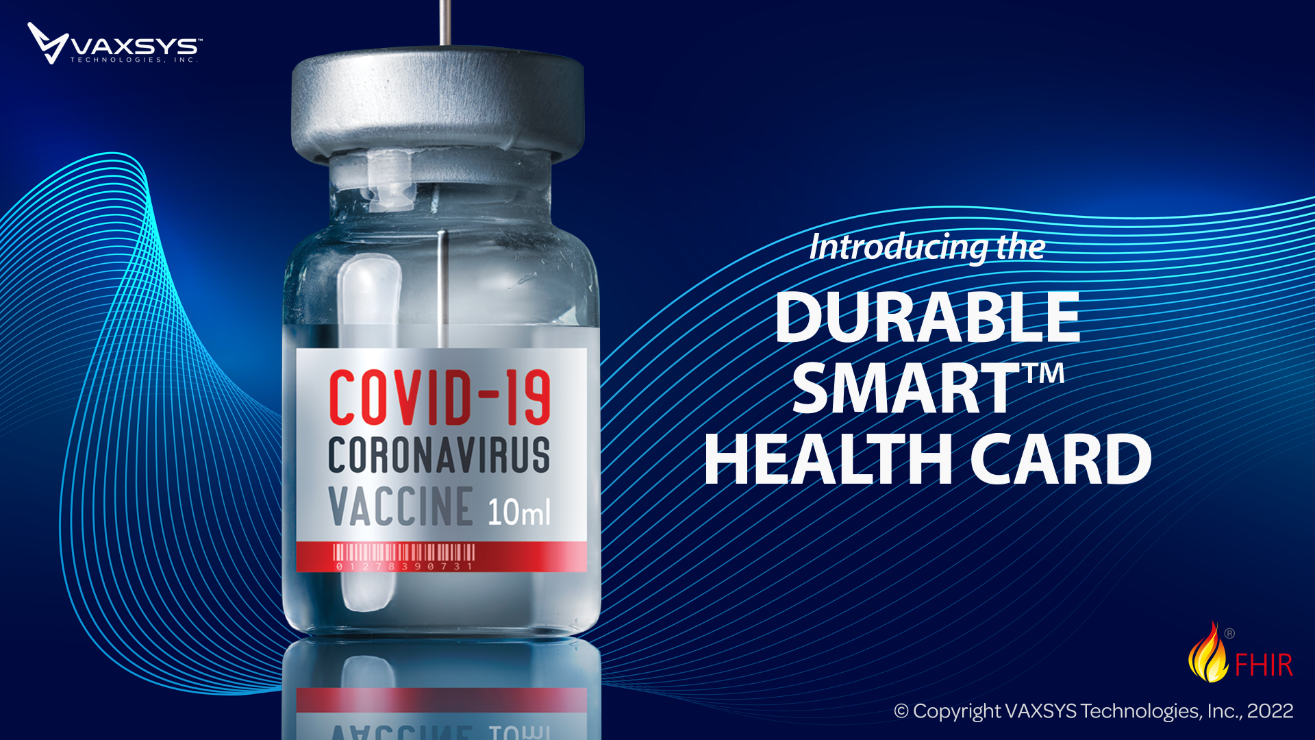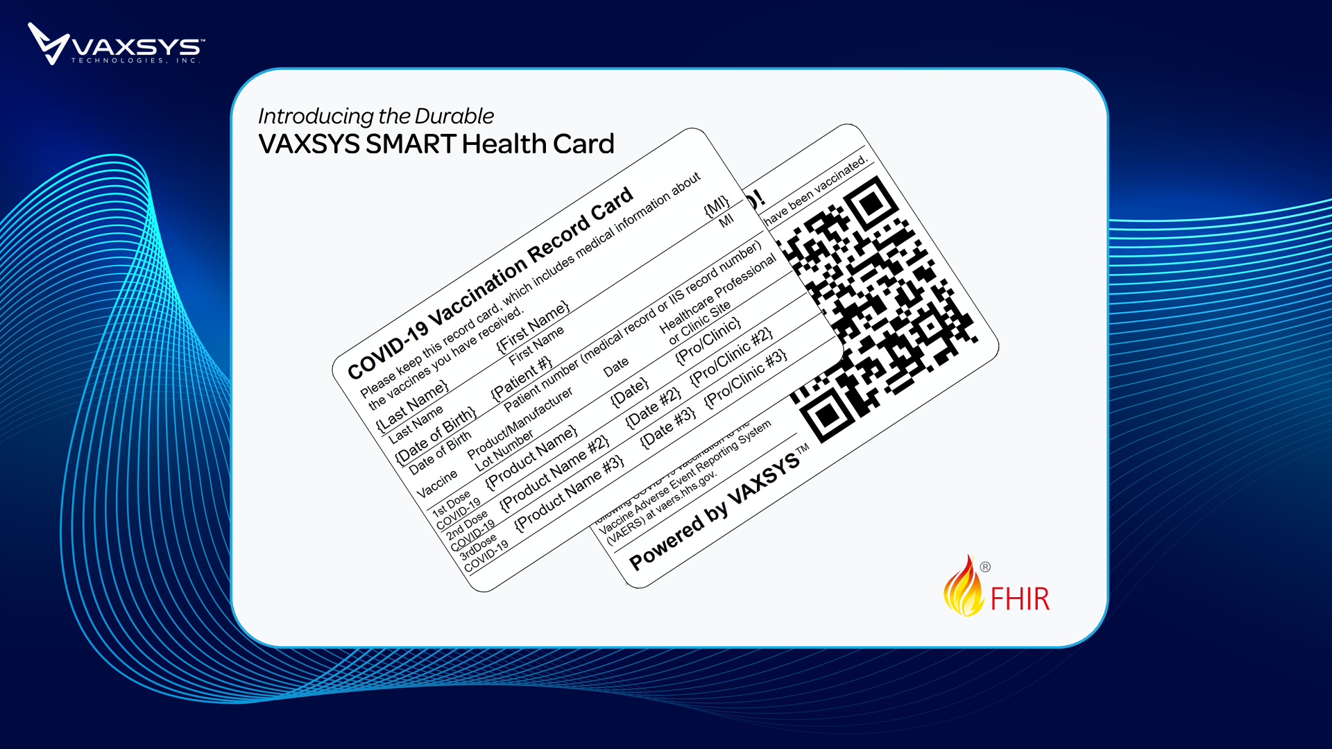 The VAXSYS® Durable SMART™ Health Card System employs key technologies to ensure that the card issuing process is quick, easy to use, accurate and secure. Paramount to the system is vendor 'ease of use.' On site, participants may be enrolled, key medical records integrated via SMART Links, and a personalized durable SMART Health Card printed–all in about 5 minutes. The participant's card may then be read at any location using any SMART Health Card reading App on the App Store or Google Play Store.